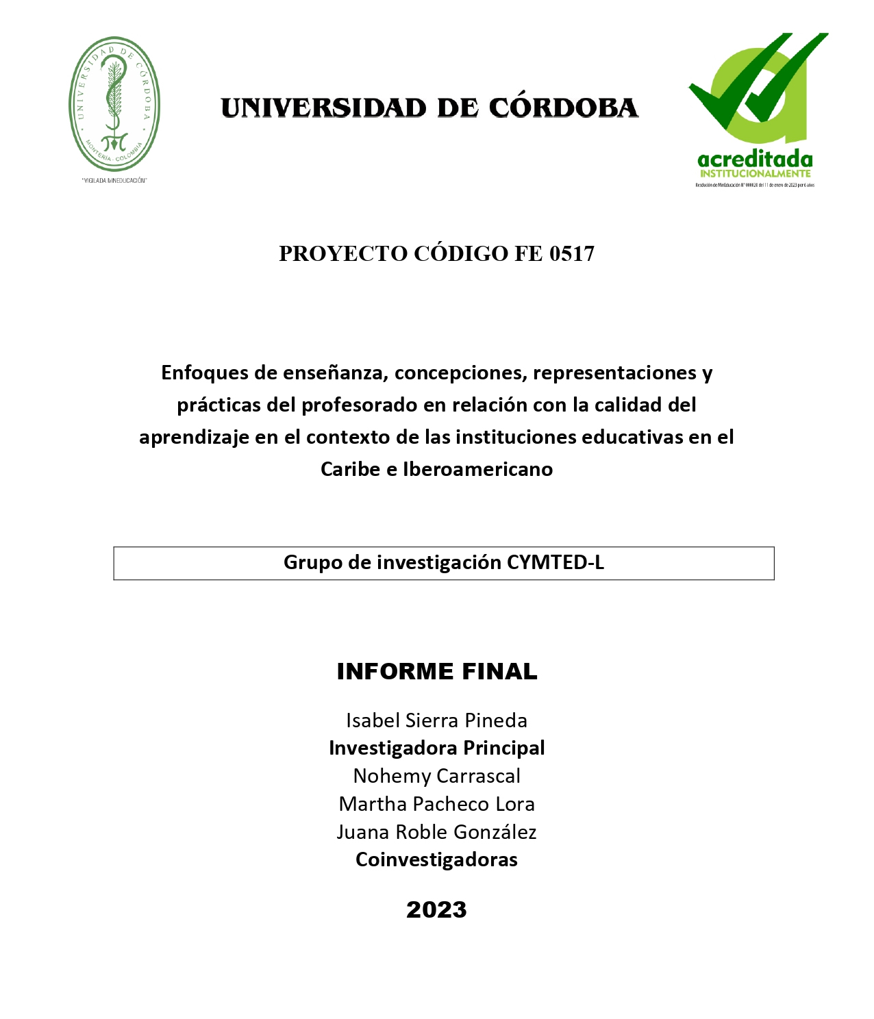 • Carrera 6 No. 77- 305 Universidad de Córdoba Montería